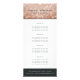 El elegante diseño de rosa de cobre y de tarjeta en rack negro muestra sus servicios, la lista de precios o la información comercial de manera excelente. El diseño incluye un borde de luces de color de color dorado rosa de cobre en la parte superior, con su nombre y/o nombre de negocio puesto. Incluye cuatro encabezados de personalizable y campos de texto de cuerpo, y espacio para la información de contacto de su empresa a lo largo de la parte inferior, con recorte de carbón fuera de negro. Para ajustar el diseño, introduzca el texto y, a continuación, utilice la función Personalizar para cambiar el posicionamiento y el tamaño de las fuentes.
