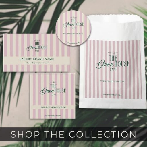 Tarjeta Publicitaria Chic Pink Stripes Green Bakery Logo QR Price