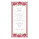 Flores rosa rosadas turbias boda BUDGET. Esta carta de menú boda asequible presenta un bonito diseño rosa rosado polvoriento, perfecto para un boda romántico. La tarjeta muestra delicados rosas acuáticos, dispuestos en ramos de hojas verdes exuberantes en la parte superior e inferior para enmarcar el texto del menú. El texto mismo se muestra dentro de un marco blanco limpio, resaltado con un borde rosado polvoriento. La carta de la parte trasera del menú sigue la temática floral, con hermosas guirnaldas florales y las iniciales de la pareja que le dan un toque personal.