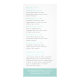Tarjeta de estante elegante con un diseño simple y moderno con texto en un color aqua / turquesa claro sobre un fondo blanco. La parte posterior tiene su lista de precios / menú de servicios. Este diseño es perfecto para un spa de día pero se puede modificar para cualquier tipo de negocio.