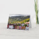 Tarjeta Pueblo noruego con montañas en segundo plano