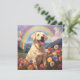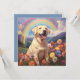 Una tarjeta de condolencias personalizada de labrador blanco o amarillo con una hermosa pintura de un labrador amarillo feliz en una colina celestial con un hermoso arcoíris en lo alto. Simboliza que el labrador ha cruzado el puente del arcoíris hacia el cielo perruno. Puedes personalizarla con el nombre de tu perro o cualquier otro texto en la parte posterior de la tarjeta. Es un regalo especial de recuerdo o condolencias para cualquier amante de los labradores si su querido perro ha fallecido.