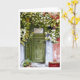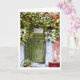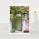 Una vieja puerta verde, bien aguada, casi oculta detrás de la colorida vid que crece a un lado de la casa. El yeso rojo descascarillado de la pared aporta un agradable contraste con el verde de la vid. Reproducción de una pintura acuarela original.
