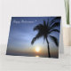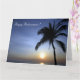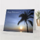 Palmeras en una playa al atardecer. Personalizar la tarjeta para cualquier ocasión.