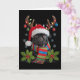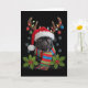 Tarjeta Pug de Navidad con cuernos sombrero de Santa bufan