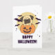 Tarjeta Pug En Calabaza Dulces Perros Feliz Halloween