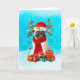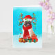 Pug disfrutando en la nieve con regalos de Navidad con sombrero de Santa Claus y luces de Navidad es una idea de regalo perfecta para alguien que ama esta raza de perro