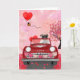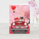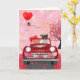 Tarjeta Pug Perro Coche con Corazones San Valentín
