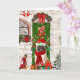 Pug Perro Navidad sentado fuera de la casa decorada con corona de Navidad, el árbol de Navidad es una idea perfecta de regalo de Navidad para los amantes de los perros.