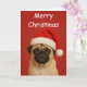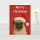 Tarjeta Pug with a Santa hat Custom Christmas Greeting