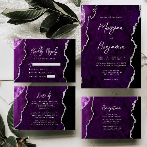 Purple Agate Silver Script Wedding SuiteDiseñado por Akhates Designs