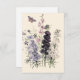 Tarjeta Púrpura acuarela, flores de jardín rosado, maripos