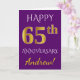Tarjeta Púrpura, Dorado Falso Aniversario de Bodas 65 + No