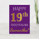 Tarjeta Púrpura, falso oro Aniversario de bodas número 19
