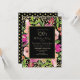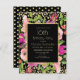 Colores de agua rosadas hojas florales y verdes sobre una invitación a los chicas de oro negro y purpurinoso Sweet 16, 16 cumpleaños. La parte trasera de esta carta tiene puntos de polka dorados sobre un fondo negro. Póngase en contacto con nosotros para obtener ayuda sobre la personalización o para solicitar productos coincidentes.