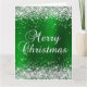 Formato vertical giratorio finge brillantemente gris purpurina plateado con una falsa imagen de arte digital de Relieve metalizado rojo oscuro de Christmassy brillante esmeralda. Se puede cambiar el color de la caligrafía clásica del texto Feliz Navidad. O, si prefiere crear su propio saludo de vacaciones en el exterior, puede borrar la imagen tipográfica y reemplazarla con texto del sistema. Colores de vacaciones plateados y verdes. Estos son gráficos bonitos, pero todos los purpurinas brillan y brillan en las impresiones gráficas como una foto. Puedes cortar y pegar diferentes cartas personalizadas para diferentes familiares y amigos y pedir las cartas por separado.