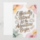 Celebre una bien merecida jubilación con esta elegante tarjeta de felicitación de acuarela que presenta la cita manuscrita “Oficialmente jubilado – Que comience la aventura.”
