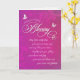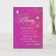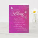 Deséenle a alguien un feliz cumpleaños con esta elegante tarjeta de caligrafía, que incluye el mensaje: "Que Dios bendiga rico tu año de todas maneras, y que Su gracia brille sobre ti, llenando tu corazón de alegría, tu alma de amor y tu mente de paz". El diseño incluye mariposa y acentos florales. En el interior de la izquierda hay un mensaje en blanco sobre fondo de textura rosada, "Me llena la vida con cosas buenas. ¡Mi juventud se renueva como el águila!" Adentro a la derecha está este mensaje en blanco con acento de mariposa rosa en la parte superior, pero se puede personalizar. Espero que en tu cumpleaños recuerdes cuánto te aman, aprecian y aprecian. ¡FELIZ CUMPLEAÑOS!