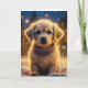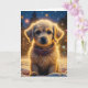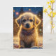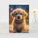 Perro cachorro lindo afuera en una nevada tarjeta de Navidades personalizada por la noche.