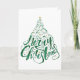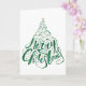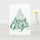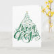 Un árbol de Navidad moderno hecho en acuarela con adornos de oro falso en la parte delantera y la frase "Que tu Navidad brille y tu Año Nuevo resplandezca" hace que esta sea una tarjeta única para familiares, amigos y compañeros de trabajo.