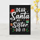 Tarjeta Querido Santa Mi Hermana Lo Hizo Chicas Niños Niño