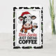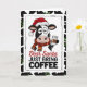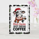 Esta tarjeta festiva presenta a una vaca cansada pero adorable con un sombrero y una bufanda de Santa sosteniendo una taza de café con el mensaje Querido Santa Trae Solo Café. Perfecta para amantes del café, madrugadores y cualquiera que sobreviva al ajetreo de las fiestas con una taza caliente en mano.