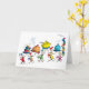 Esta fantástica ilustración captura la pura alegría de los Whos de Whoville preparando su banquete navideño. Cinco Whos, vestidos con delantes y sombreros festivos y coloridos, marchan en una procesión alegre, equilibrando con regocijo cargas masivas y coloridas, incluyendo una enorme sopera amarilla, cubiertas para servir de gran tamaño, y peligrosamente altas pilas de tazones pequeños y brillantemente coloreados. Esta escena caprichosa encarna perfectamente el espíritu caótico pero conmovedor de la celebración de la Navidad de los Whos.
