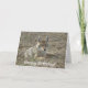 Tarjeta de Coyote Acostado "con leyenda". Un joven coyote se relaja después de una mañana persiguiendo ratones en las praderas de hierba corta del sur de Alberta.