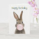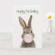Tarjeta Rabbit Blowing Pink Bubble gum Happy Birthday