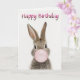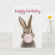 Tarjeta Rabbit Blowing Pink Bubble gum Happy Birthday