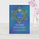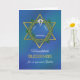 Esta tarjeta azul y dorada te permite compartir deseos de bendiciones con un rabino especial una vez que se celebra Hanukkah. En la parte delantera aparece la Estrella de David con una bella corona atada a ella. ¡Compra tu copia de esta tarjeta ahora! (Las letras de oro y la estrella son creadas digitalmente.)