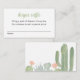 Una tierna carta de rifa de pañales para la ducha de bebé al estilo de fiesta. Esta tarjeta de recinto temática de cactus presenta un bonito diseño de acuarela desértico en delicados tonos verde desierto, rosa rosa rubor, azul polvoriento. Perfecto para una fiesta de boho o una moderna ducha de bebé al suroeste.
