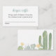 Una tierna carta de rifa de pañales para la ducha de bebé al estilo de fiesta. Esta tarjeta de recinto temática de cactus presenta un hermoso diseño de postre acuarela en delicados tonos de verde polvoriento azul, amarillo y desierto. Perfecto para una fiesta de boho o una moderna ducha de bebé al suroeste.