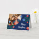 La elegante tarjeta de Navidades personalizados plegados presenta una rama minimalista de pino de árbol de Navidad con decoración roja y azul con un patrón de copos de nieve para la temporada festiva. Estos adornos le dan un toque alegre y festivo al diseño general. El ilustracion irradia un espíritu festivo alegre y despreocupado, capturando la magia de decorar un árbol de Navidad, mientras que el color azul oscuro se suma al elegante y sofisticado saludo. Esta adorable rama de árbol de Navidad con almohada de azulejos es perfecta para difundir alegría por las vacaciones y cálidas vibraciones de vacaciones, añadiendo un toque festivo a la decoración de casa de tus Navidades. Personaliza esta tarjeta de Navidades con tu foto, tu saludo y tu firma familiar.