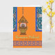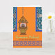 Ramadan Mubarak para el sobrino. Una linterna de fanoos está iluminada y cuelga de una cadena. Está situado sobre un fondo de una pared naranja con ventanas de fibra ornamentadas. Imagen y verso copyright © Shoaff Ballanger Studios.