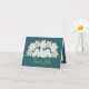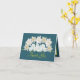 Hermoso ramo de flores de clemátide blancas rodeando ramos de rosas blancas sobre un fondo de color verde aqua. El texto de saludo de color amarillo utiliza una atractiva tipografía de letra script. Las flores cubren la parte delantera de esta tarjeta que se puede utilizar como tarjeta de vacaciones, tarjeta de agradecimiento, tarjeta de cumpleaños o cualquier otra tarjeta de su elección. ¡Personalízala con tu texto y/o imágenes para hacerla única!