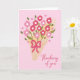 Envía un poco de amor y hazle saber a alguien que está en tus pensamientos con esta hermosa tarjeta de felicitación "Pensando en ti". Con un precioso ramo de flores rosadas sobre un suave fondo rosa, esta tarjeta es delicada, elegante y perfecta para muchas ocasiones. Ya sea que un amigo esté pasando por un momento difícil, celebrando una pequeña victoria, o simplemente quieras alegrar el día de alguien, esta tarjeta es una forma atenta de contactar y mostrar que te importa.