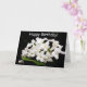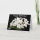 Tarjeta de cumpleaños de flores blancas con fondo negro. Tomada en Poughkeepsie, NY.