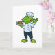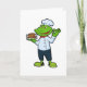 Tarjeta Rana como cocinero con plato de servir y pollo