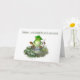 Tarjeta de felicitación para el graduado con diploma de rana, sentado cerca del estanque.