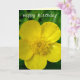 Un ranúnculo fotografió en las maderas en el parque Cardiff, País de Gales del Bute. Reino Unido. Esta versión modificada para requisitos particulares como tarjeta de cumpleaños. "Feliz cumpleaños" escrito en el frente en la "escritura del juego romana" (en blanco) y también en el interior en negro. El interior del fondo está en amarillo claro. (véase dentro). Esta tarjeta puede también ser personalizar, e.g hay el sitio por debajo el ranúnculo en donde usted podría añadir "al nombre".