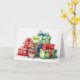 Ratón acuarela con regalos de vacaciones en copos de nieve.