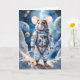 Ratón con traje de astronauta listo para viajar a lugares desconocidos en esta tarjeta de felicitación en blanco.