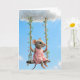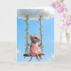 Tarjeta Ratón de Cumpleaños con Vestido Rosa en un Columpi