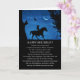 Una tarjeta de cumpleaños divertida que toca el lado espiritual. Un caballo y jinete a la luz de la luna creciente con cuervo y búho. ¡Un poema divertido de cumpleaños que nos recuerda disfrutar del paseo de la vida!