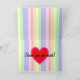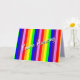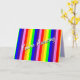 Rayas arcoiris clásicas, rayas delgadas verticales en colores de rojo, naranja, amarillo, verde, azul, añil y violeta, también conocidas como ROY G BIV, de las primeras letras de cada color, lo que ayuda a recordar el orden de los colores del espectro. El texto dice "¡Eres asombroso!" con letras blancas y un borde negro para una mirada elevada en las letras. El mensaje interior dice "Amor y felicidad siempre" en negro. Si lo desea, puede personalizar el texto con su propio mensaje o dejar los cuadros de texto en blanco para borrar el texto y mantener las bandas de arco iris clásicas.Esta imagen colorida se repite en el interior, se vuelve pálida con transparencias para que pueda escribir sobre ellos. Colores de arcoiris brillantes, patrón de rayas de arcoiris clásico, para alguien asombroso! Envía un mensaje a un amigo, miembro de la familia, novio, esposo, compañero de seno, un diseño para alegrar el día de alguien, para el Día del Orgullo Gay o celebración del Orgullo Gay, conciencia del orgullo o cuando quieras. Zesty vertical delgado rainbow stripes colorido diseño M Sylvia Chaume. ¡Feliz bendición!