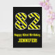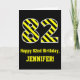 El frente de este divertido y audaz diseño de tarjeta de felicitación con tema de cumpleaños presenta un gran número "82" con un patrón de rayas negras y amarillas, junto con el mensaje "Feliz cumpleaños 82" y un nombre personalizado. El fondo de la parte frontal es de color negro. El interior presenta un mensaje de felicitación de cumpleaños personalizado, o quizás podría estar en blanco si se desea escribir un mensaje a mano en su lugar. Una tarjeta de cumpleaños personalizable como esta podría ser una forma divertida de enviar un mensaje en celebración del cumpleaños número ochenta y dos de alguien.