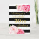 Tarjeta Rayas negras y flores rosadas Felices 30 años