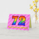 Esta divertida y feliz tarjeta de felicitación de 72 años tiene un frente con un gran número "72" que tiene un patrón colorido inspirado en el aspecto de un espectro arcoiris, en un corazón rosa claro y rosa oscuro forma el fondo de rayas. En la parte delantera también aparece el mensaje "Feliz cumpleaños número 72", seguido de un nombre de destinatario personalizado. El interior presenta un mensaje de bienvenida de cumpleaños de personalizado, o tal vez podría ser borrado y dejado en blanco si se va a escribir un mensaje a mano. Una tarjeta de cumpleaños de personalizable como esta podría ser una manera divertida y feliz de enviar un mensaje para celebrar el 72 cumpleaños de alguien. [~Z0000418]