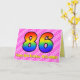 Esta festividad y alegre tarjeta de felicitación de 86 años tiene un frente con un gran número "86" con un colorido patrón de gradiente inspirado en el espectro arcoiris, sobre un alegre fondo de rayas de forma de corazón rosa oscuro y rosa claro. En la parte delantera también aparece el mensaje "Feliz 86º cumpleaños", seguido de un nombre de destinatario personalizado. El interior presenta un mensaje de bienvenida de cumpleaños de personalizable, o tal vez podría ser borrado y dejado en blanco si se va a escribir un mensaje a mano. Una tarjeta de cumpleaños personalizado como esta puede ser una manera divertida y feliz de enviar deseos de cumpleaños a alguien que está celebrando su cumpleaños número ochenta y seis. [~Z0000418]